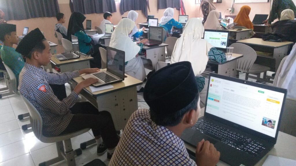 Limasl siswa MTs. Miftahul Ulum 2 Banyuputih Kidul Jatiroto Lumajang mengikuti kegiatan simulasi Kompetisi Sains Madrasah (KSM) tingkat Kabupaten Lumajang tahun 2023. Kamis (06/07/2023.