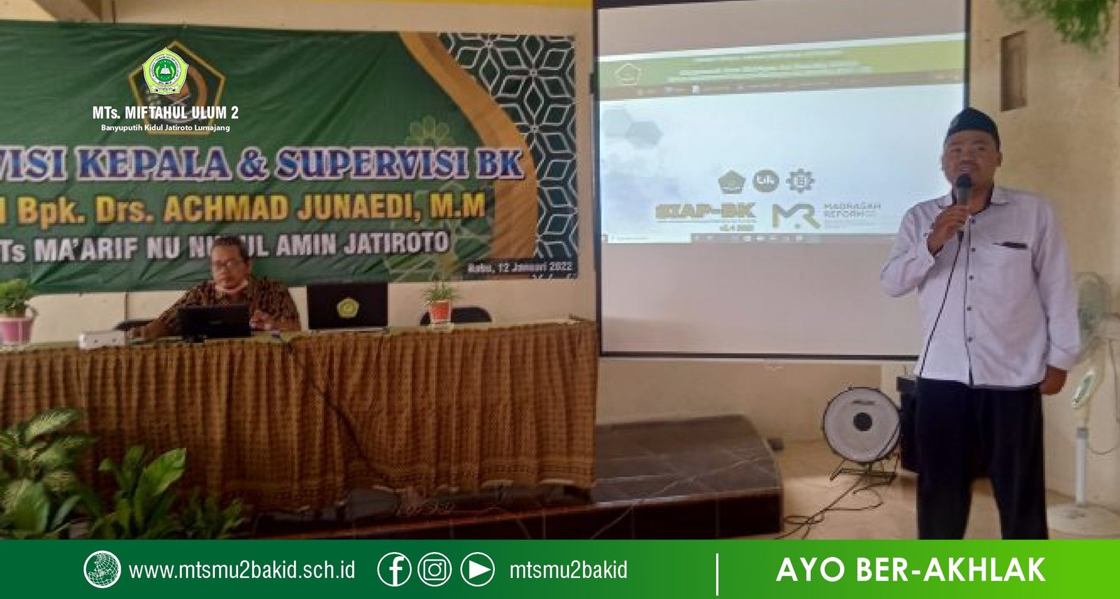 Guru Bimbingan dan Konseling MTs. Miftahul Ulum 2 Banyuputih Kidul Jatiroto Lumajang, Abdur Rozak, S.Sos secara aklamasi terpilih sebagai koordinator guru BK madrasah tsanawiyah pada empat Kecamatan wilayah binaan dan Koordinasi Bapak Drs. Achmad Junaedi, M.M pada kegiatan Sosialisasi Supervisi Pembelajaran dan Supervisi Guru Bimbingan dan Konseling (BK) Wilayah Bina : Drs. Achmad Junaedi, M.M. Hari ini, Rabu (12/01/21). Empat kecamatan tersebut meliputi Kecamatan Jatiroto, Kedungjajang Tekung dan Tempursari