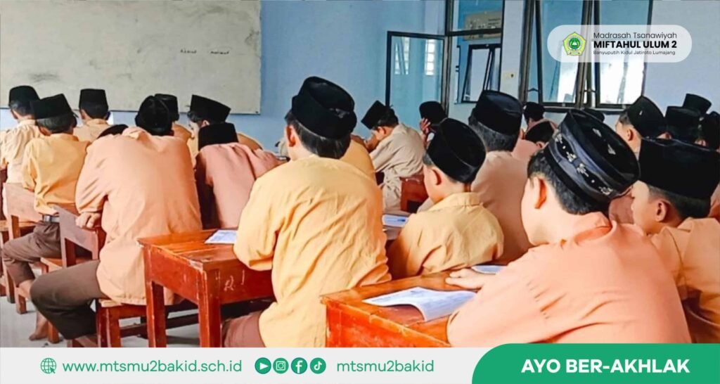 Pelaksanaan Asesmen Sumatif Akhir Tahun (ASAT) Tahun Pelajaran 2024/2025 di MTs Miftahul Ulum 2 Banyuputih Kidul memasuki hari kelima, Sabtu (31/05/25). Dua mata pelajaran yang diujikan adalah Pendidikan Pancasila dan Kewarganegaraan (PPKN) pada sesi pertama dan Fikih pada sesi kedua.