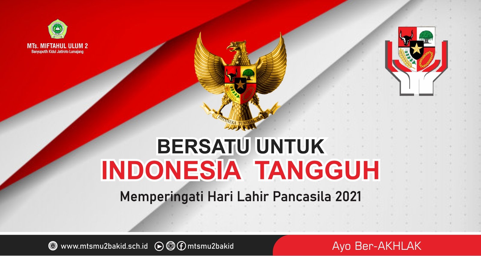 Segenap Civitas Akademika MTs. Miftahul Ulum 2 Bakid mengucapkan: Selamat Memperingati Hari Lahir Pancasila, Bersatu Untuk Indonesia Tangguh.