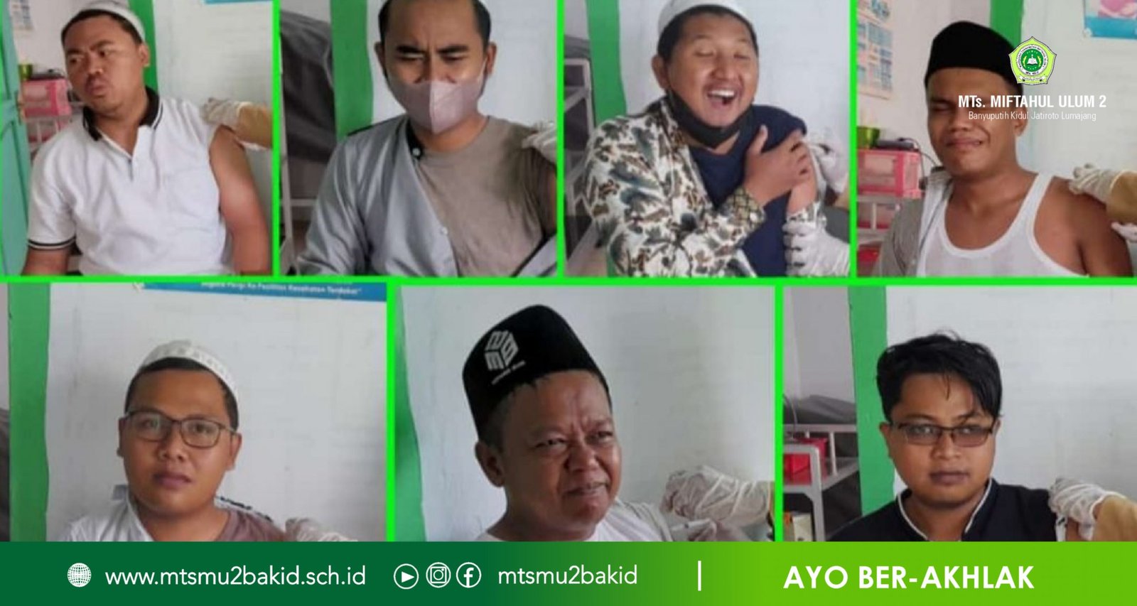 Dukung program 1 juta vaksin Booster Kementerian Agama Kabupaten Lumajang, Seluruh Dewan Guru dan Tenaga Kependidikan MTs. Miftahul Ulum 2 Banyuputih Kidul Jatiroto Lumajang ikut vaksinasi dosis ketiga Vaksin Booster, Senin (25/04/22). Proses vaksinasi dilakukan beberapa titik di puskesmas dan lokasi terdekat dari rumah masing-masing guru.