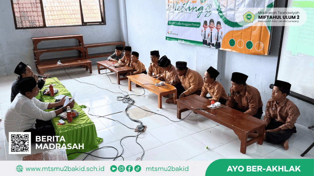 Gelaran Class Meeting Semester Ganjil Tahun Pelajaran 2025/2026 di MTs Miftahul Ulum 2 Banyuputih Kidul memasuki hari kelima pada Ahad, 7 Desember 2025, yang menghadirkan babak final Lomba Cerdas Cermat Terpadu. Kegiatan dilaksanakan di dua lokasi berbeda, yakni Aula Madrasah Lantai 3 untuk peserta putra dan Aula Madrasah Putri Lantai 2 khusus peserta siswi.