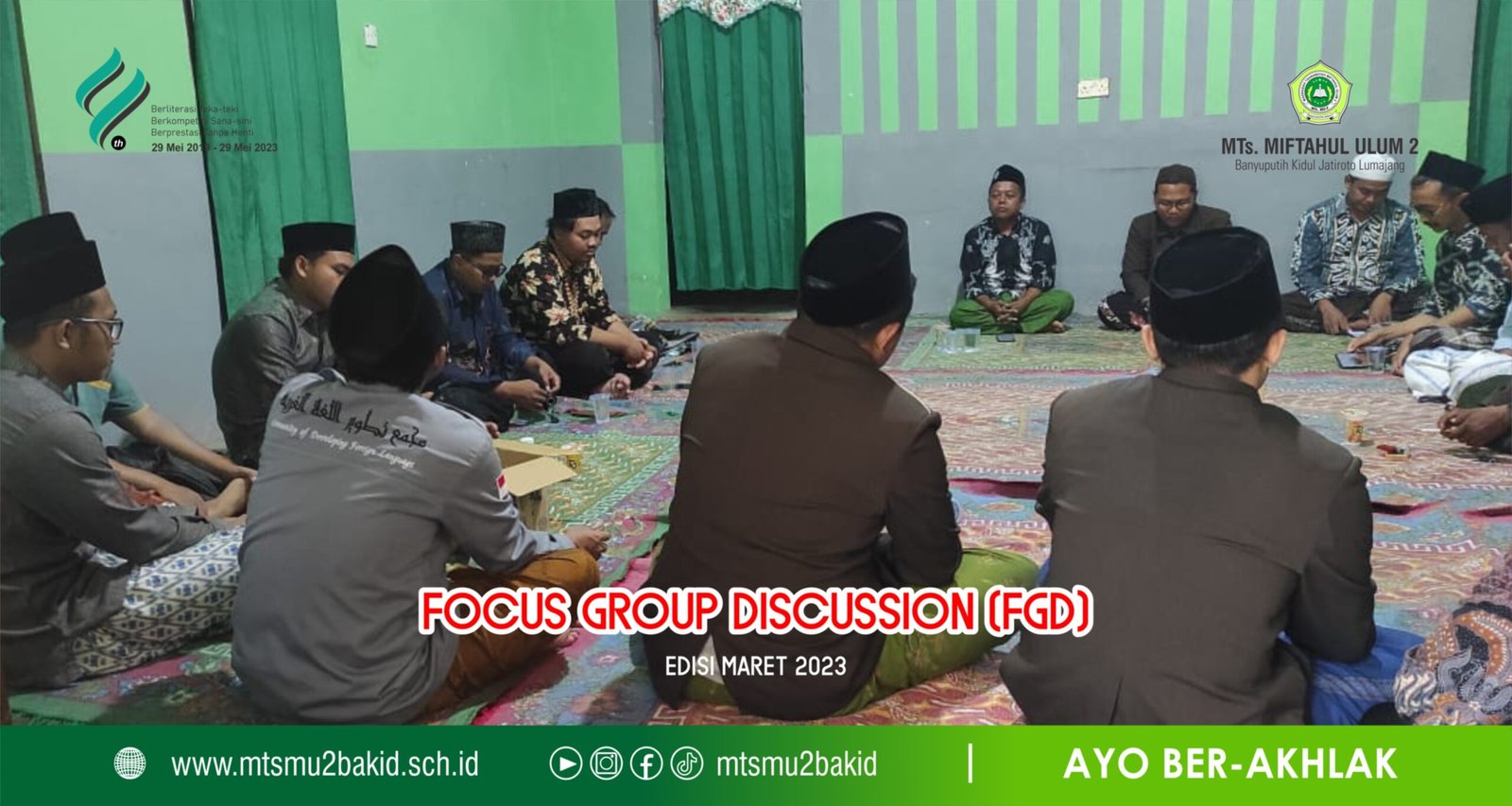 Focus Group Discussion (FGD) Edisi Bulan Maret 2023 kembali digelar oleh segenap Civitas MTs. Miftahul Ulum 2 Banyuputih Kidul Jatiroto Lumajang, Ahad (20/03/23). Berbeda dengan biasanya, FGD kali ini dilaksanakan di kediaman Waka. Kesiswaan, Zainul Arifin, SH di Dusun Manggungan Desa Karangbayat Kecamatan Sumberbaru Kabupaten Jember.