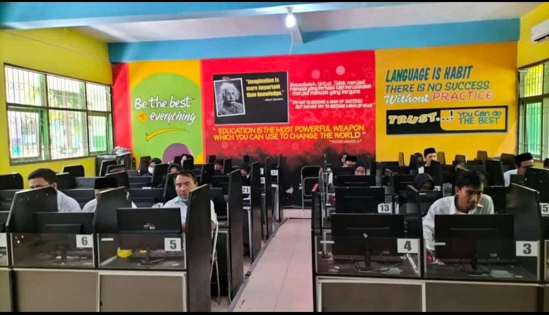 Guru Bimbingan dan Konseling MTs. Miftahul Ulum 2 Banyuputih Kidul Jatiroto Lumajang, Abdul Rozaq, Sos Sabtu (18/12/21) mengikuti Assesmen Kompetensi Guru (AKG) di Laboratorium Komputer MTs.N 1 Lumajang.