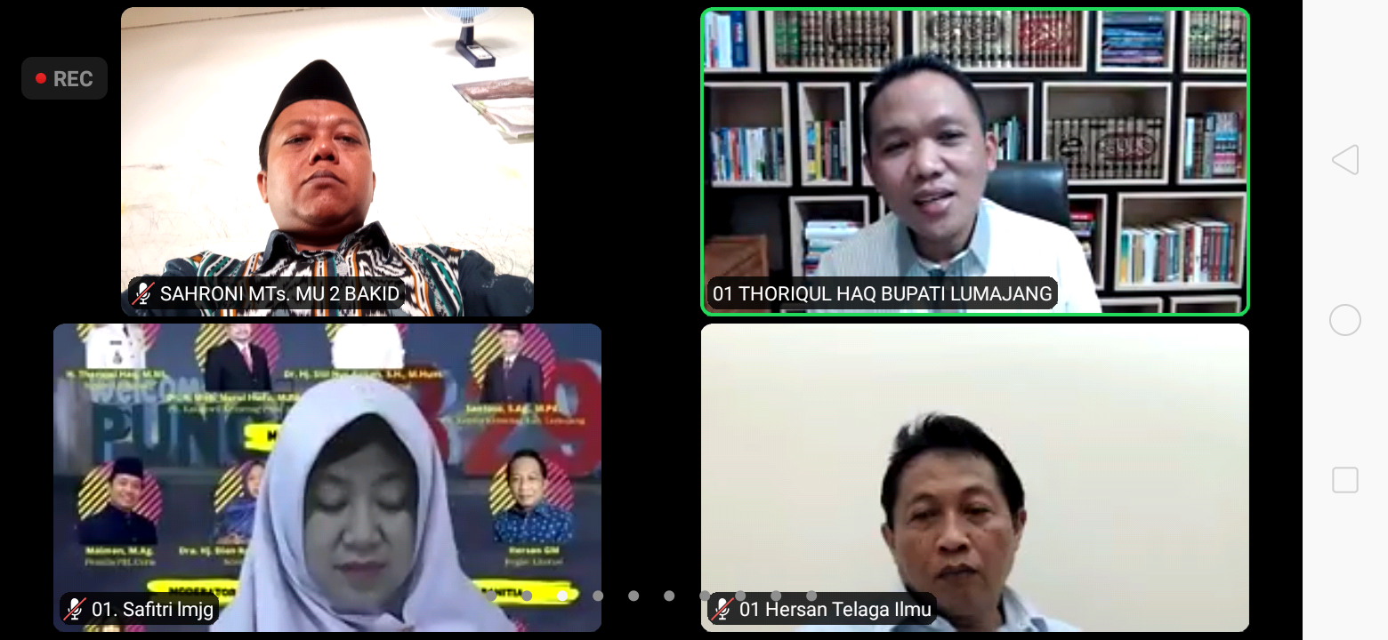 Kegiatan yang mengambil tema “Dengan CERIS PAI Hebat Karakter Siswa Bermartabat Untuk Gali Kearifan Lokal” ini dimulai pada pukul 08.30 WIB secara virtual melalui aplikasi zoom meeting dan live streaming di channel youtube Narasi7. Sebanyak 224 peserta mengikuti kegiatan bimtek tersebut mulai dari guru PAI SD, SMP, SMU dan beberapa perwakilan madrasah di bawah naungan Kementerian Agama Se Tapal Kuda