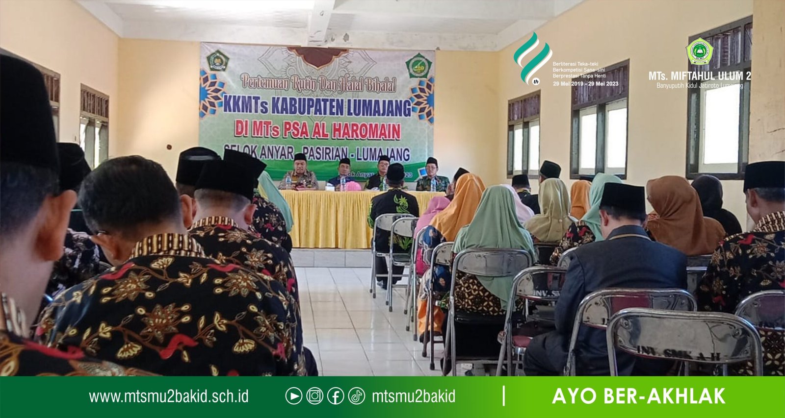 Kelompok Kerja Madrasah Tsanawiyah Kabupaten Lumajang menggelar Pertemuan Rutin dan Halal Bihalal Tahun 1444 H., Selasa (23/05/23). Kegiatan rutin triwulan yang dihadiri oleh Kepala Madrasah Tsanawiyah Se Lumajang tersebut dilaksanakan di MTs. PSA Al-Haromain Selok Anyar Pasirian Lumajang.