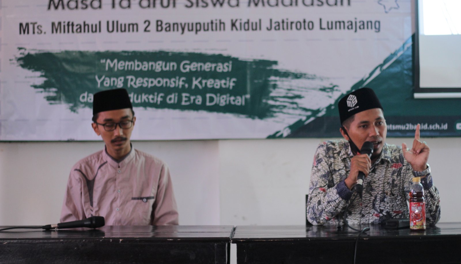 Rabu (13/07/21) adalah hari ke-empat pelaksanaan Masa Ta’aruf Siswa Madrasah (MATSAMA) MTs. Miftahul Ulum 2 Bakid Tahun Pelajaran : 2021/2022 yang rencana akan rencananya akan dilaksanakan hingga Kamis mendatang. Di hari ketiga tersebut, para peserta didik baru dibekali dengan materi Moderasi Agama. Hadir sebagai narasumber Dr. Zainuddin, M.Pd.I Wakil Ketua STISMU Lumajang yang juga Ketua Komite MTs. Miftahul Ulum 2 Bakid.