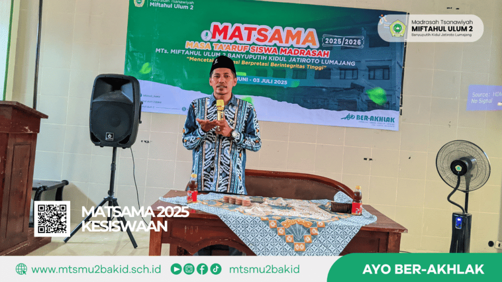 MTs Miftahul Ulum 2 Banyuputih Kidul melanjutkan rangkaian kegiatan Masa Ta’aruf Siswa Madrasah (MATSAMA) tahun pelajaran 2025/2026 dengan tema penting: Penguatan Moderasi Beragama di Madrasah, Kamis, 17 Juli 2025.