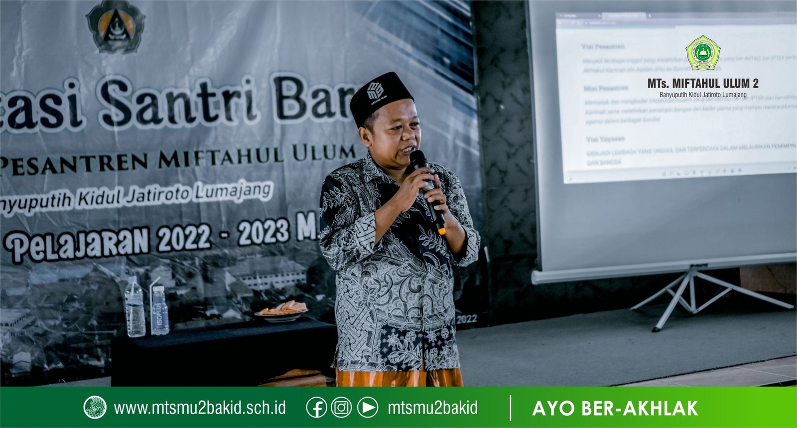 Ahad (26/06/22) Kepala MTs. Miftahul Ulum 2 Banyuputih Kidul Jatiroto Lumajang, Sahroni, S.Pd.I., M.Pd kembali menjadi Narasumber Kegiatan Orientasi Santri Baru (OSBA) Pondok Pesantren Miftahul Ulum Tahun : 2022/2023. Bertempat di Aula Pondok Pesantren, kegiatan OSBA diikuti oleh 800 santri santri baru dari berbagai wilayah provinsi bahkan ada santri baru yang berasal dari negeri jiran Malaysia.