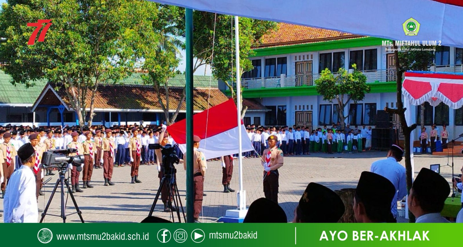 Keluarga Besar Pondok Pesantren Miftahul Ulum Banyuputih Kidul menggelar upacara Bendera Merah Putih memperingati HUT RI ke-77 Agustus 2022 di lapangan pesantren, Rabu (17/08/22).