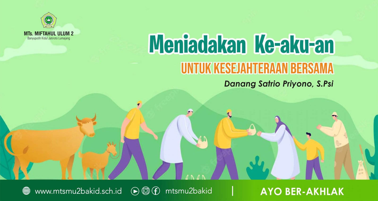 Dengan senantiasa mengimplementasikan kehendak Allah SWT dengan kesabaran dan keikhlasan, penulis percaya bahwa egosentris keakuan cepat atau lambat merubah setiap perilaku buruk kita di mata sosial. Dan egosentrisme tersebut akan berubah orientasi menjadi melayani sesama sebagai bagian dari bentuk melayani Allah SWT. Perayaan Idul Adha yang di dalamnya terdapat ritual pengorbanan harta berupa hewan ternak adalah simbol kesabaran dan keikhlasan untuk meniadakan keakuan. Dari hal itu semoga kita dapat istiqomah mau berbagi dan membantu sesama dengan segala sumberdaya yang kita miliki, Aamiin..