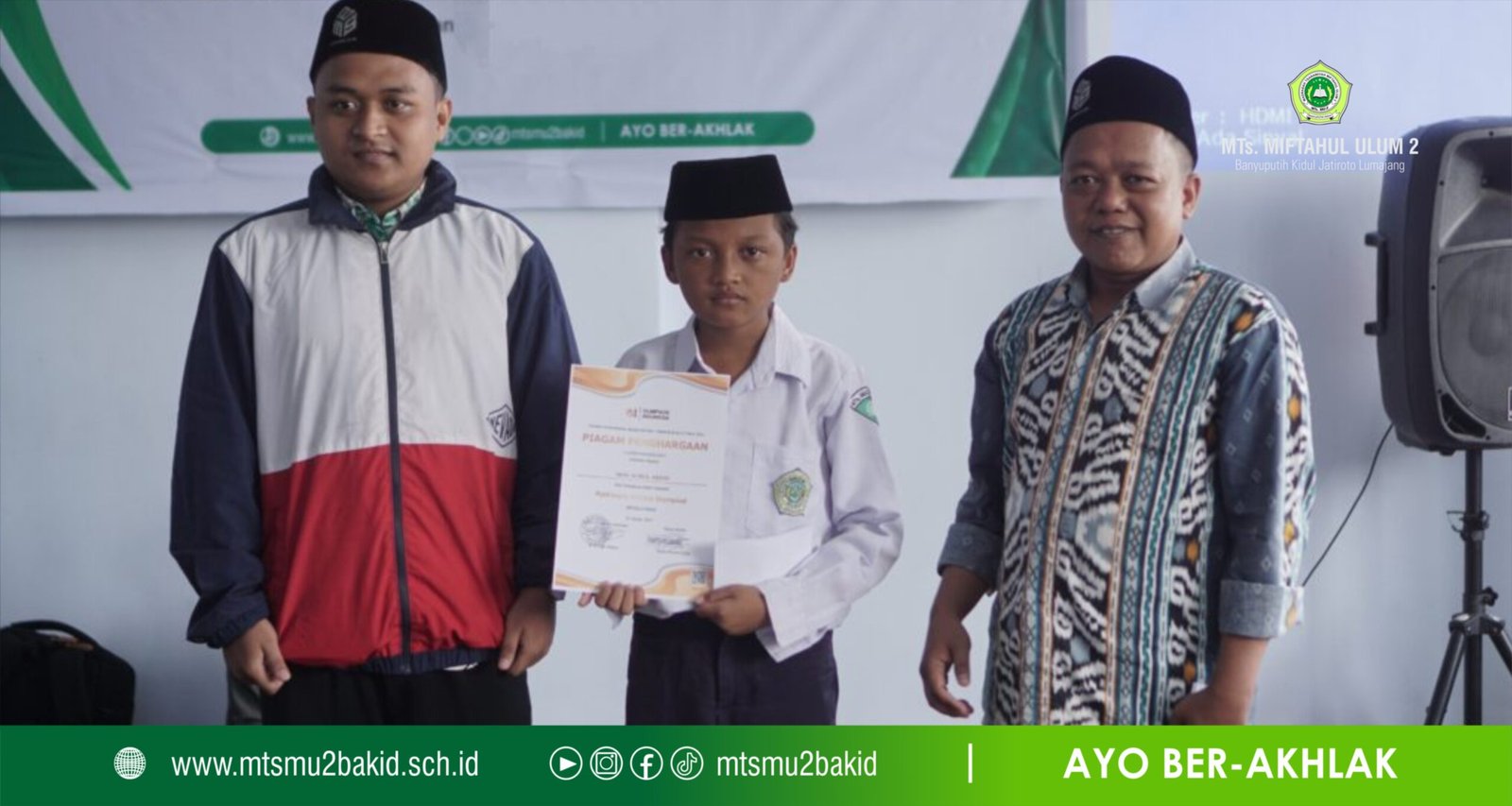 MTs. Miftahul Ulum 2 Banyuputih Kidul Jatiroto Lumajang memberikan penghargaan kepada siswa yang telah berhasil menorehkan tinta emas sebagai Juara Umum Olimpiade Tingkat Nasional 2023 dan Para siswa yang telah berhasil mendapatkan juara pada ajang Porseni tahun 2023 baik tingkat KKMTs-2 maupun tingkat Kabupaten Lumajang. Senin (13/03/23).