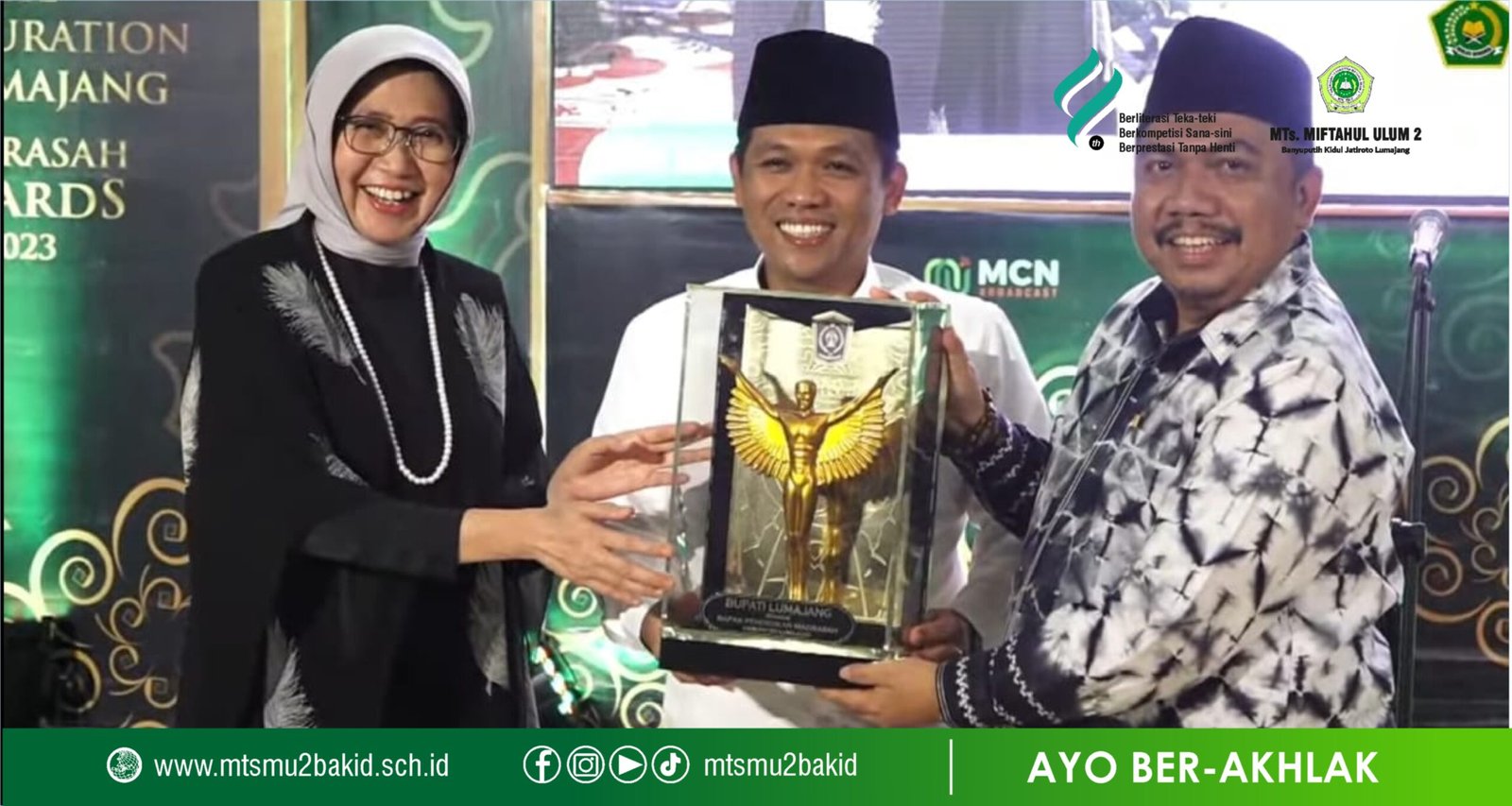 Selasa (01/08/2023), civitas MTs. Miftahul Ulum 2 Bakid memenuhi undangan Kemenag Kab. Lumajang dalam rangka event The Inauguration Of Lumajang: Madrasah Awards 2023. Undangan bernomor surat: B-2083//Kk.13.5.1/HM.00/VII/2023 diketahui mengundang seluruh civitas madrasah dari jenjang RA hingga MA dengan maksimal lima guru dari tiap-tiap madrasah.